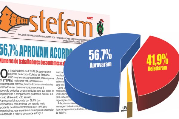 Com a aprovação do Acordo Coletivo de Trabalho, os trabalhadores na FTL/TLSA definiram a contribuição de sustentabilidade da luta sindical. São três os principais pontos definidos pelos trabalhadores: POR QUE A TAXA NEGOCIAL É IMPORTANTE? A contribuição de 3% permitirá ao Sindicato:✅ Manter sua estrutura funcional;✅ Cobrir despesas com viagens ao longo da ferrovia;✅ Financiar…